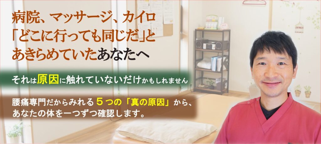 わたしも病院勤務時代は腰を中心に施術をしていましたが思うように成果を上げることが出来ませんでした。その悔しさもあってそこから非常に勉強しながら有名な先生がいたら師事させて頂きました。その結果腰痛は腰だけではなく幅広く見ないといけないことが分かりました。