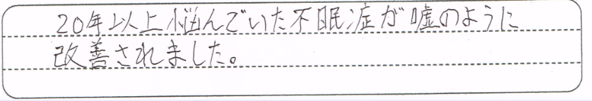 20年以上悩んでいた不眠症が嘘のように改善されました